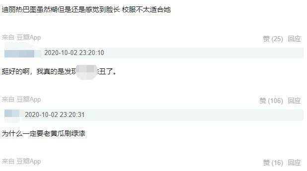 无独有偶,另一位主演迪丽热巴也没逃过网友的吐槽。路透照中,热巴穿着跟杨洋同款的校服,头上扎了个高马尾。画面比较糊,其实脸部状态如何也看不出。
